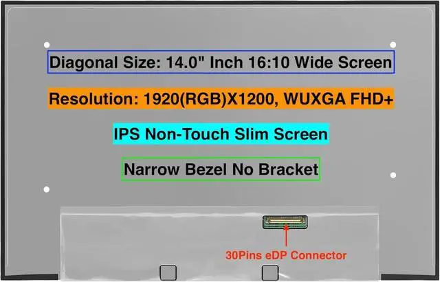 Display Technology : 14" WUXGA 1920*1200 FHD+ 16:10 Non-Touch Screen 30 pins Connector