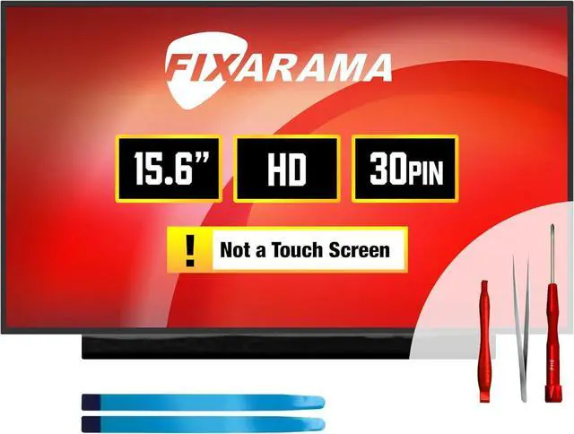 Tested grade A+ (no dead pixels), guaranteed compatibility Lifetime warranty Video connector: 30 pins, Not a touchscreen (must match your current screen) Max. resolution: HD 1366 x 768 (must match your current screen) Screen size and finish: 15.6" Matte