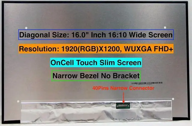 Display Technology : 16" WUXGA 1920*1200 FHD+ 16:10 OnCell Touch Touch Screen 40 pins Connector