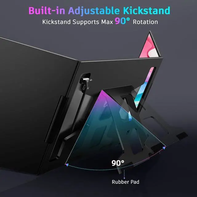 [Ultra-Slim 15.6 Alloy Dual Display] - The QQH Z80A laptop monitor extender features 0.15-inch ultra slim and dual 15.6-inch FHD 1080P IPS displays. With a 1920x1080 resolution, 178° viewing angle, 300 nits brightness, 360° rotation, 90°rotation built-in stand, and a 1200:1 contrast ratio, this monitor extension delivers a vivid, immersive visual experience.