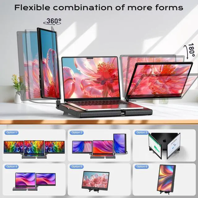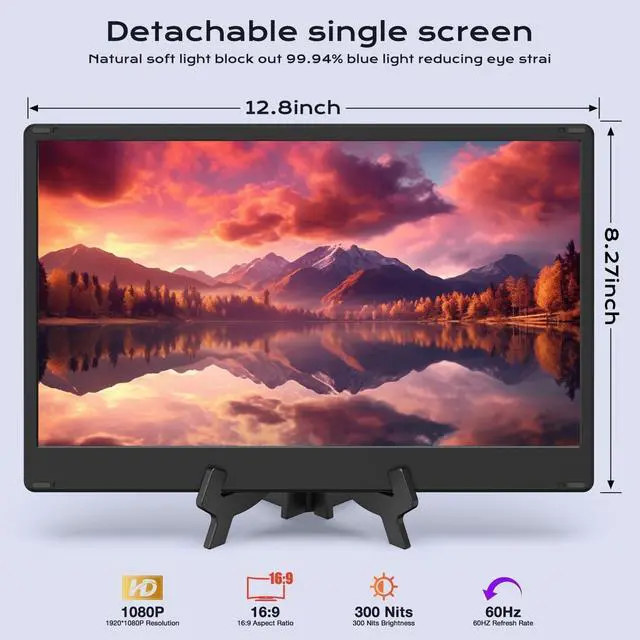 [360°Rotation & Easy Screen Detachment] Twist and turn your screen to perfection! With 360° horizontal and 180°vertical rotation, you can find your ideal viewing angle in seconds. Need to travel light? Simply detach the screen (weighing just 1.2 lbs) and take it on the go! Plus, the single screen stand keeps everything stable, making it as portable as it is versatile.