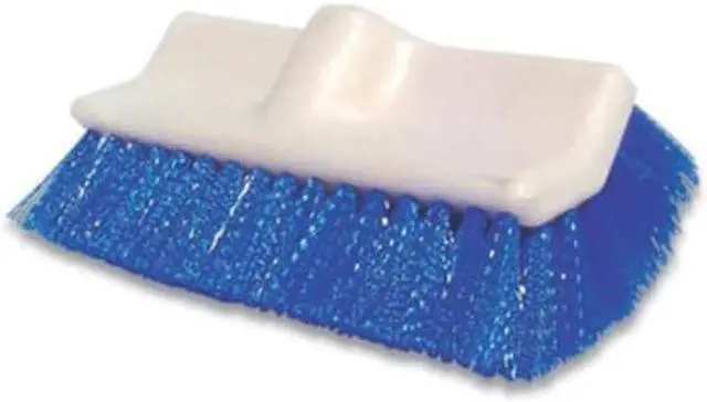 This bi-level scrub brush is designed for heavy-duty use on streets, decks, patios, and a variety of other surfaces, including walls and baseboards. The long-lasting synthetic bristles make this deck scrub brush a durable choice, as the sturdy foam blocks threaded handle hole is compatible with most handle styles. Bristle Material: Synthetic; Brush Length: 10"; Handle Material: Foam; Handle Color: White.