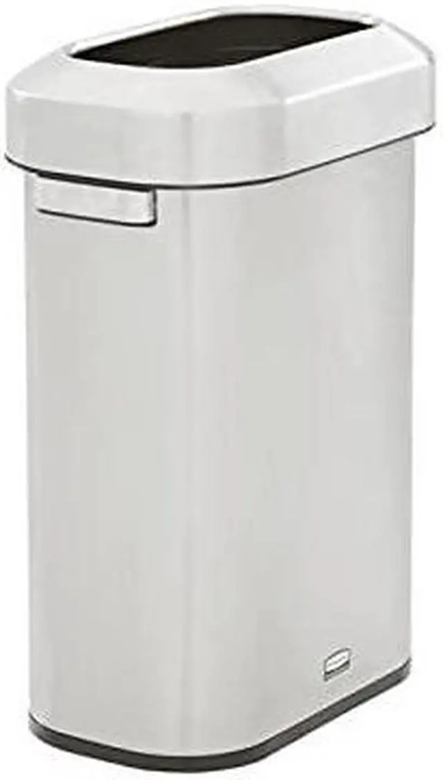 Featuring a classic design and fingerprint-resistant stainless steel, the Refine waste container fits seamlessly into any commercial space for a discreet look that enhances the overall environment. Integrated handles improve grip and ergonomics, reducing user strain and improving efficiency when emptying containers. Commercial grade material is durable and ensures the receptacle withstands the rigors of everyday use. Anti-skid feet ensure the surrounding environment stays beautiful. Waste Receptacle Type: Indoor All-Purpose Waste Bin; Material(s): Plastic; Stainless Steel; Application: Indoor All-Purpose Waste Disposal; Capacity (Volume): 15 gal.