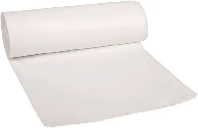 Can liner with equivalent strength of 2.0 mil liner. Perforated roll for easy dispensing. Coreless rolls save space and material. Application: Can Liner; Capacity Range (Volume) [Max]: 55 gal; Thickness: 0.63 mil; Grade: Regular.