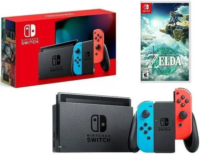 Nintendo Switch Red Blue 32GB V2 Gaming Bundle w/ Zelda Tears of The Kingdom