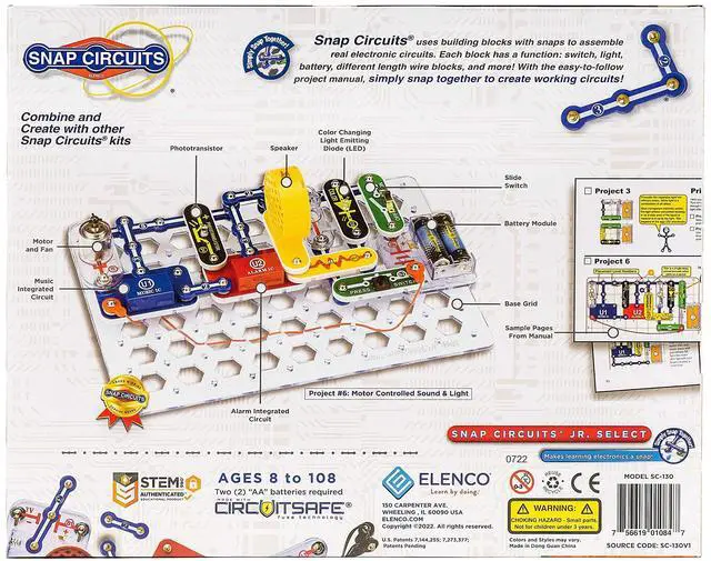 All Snap Circuits kits come with everything you need (batteries excluded) to complete real electronic circuits. Components combine to create working circuit boards just like the ones found inside televisions, radios, and other electronic devices.