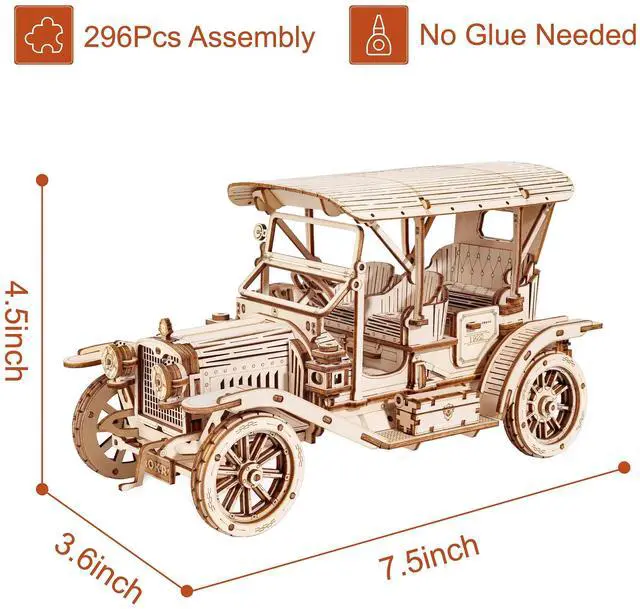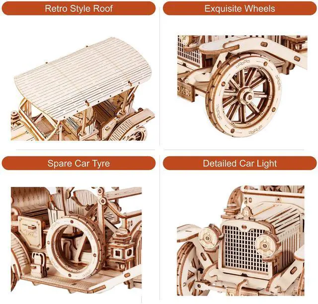 This 3d wooden puzzle recreate the stunning looks of this iconic vintage car in 19th century. Makes a perfect gift for collectible toy car enthusiasts..