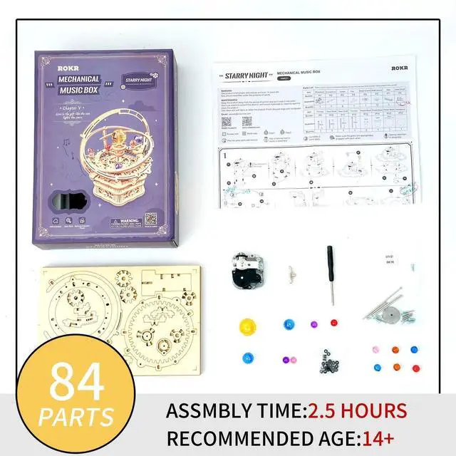 ROKR 84Pieces 3D Wooden Puzzles Starry Night Series Mechanical Music Box Kits Creative Gift for Kids