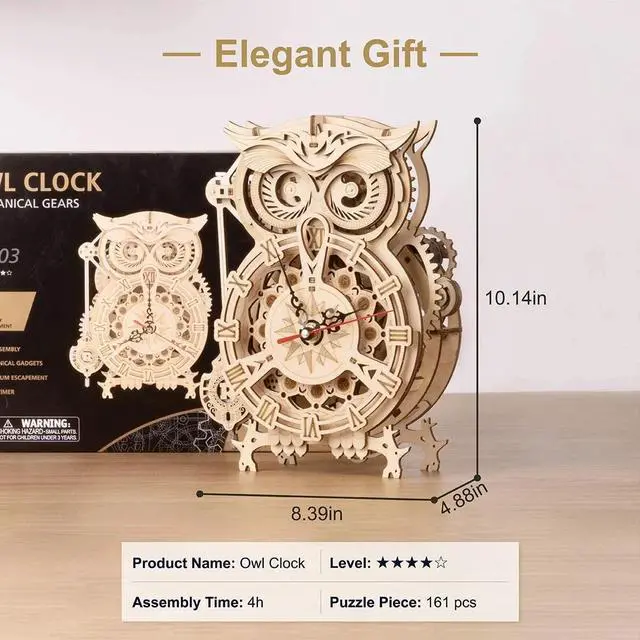 The ROKR Owl Clock is a delight to build and to watch! It is easy to build for all the pieces are pre-cut for you. Laser cutting pieces fit well toghether.