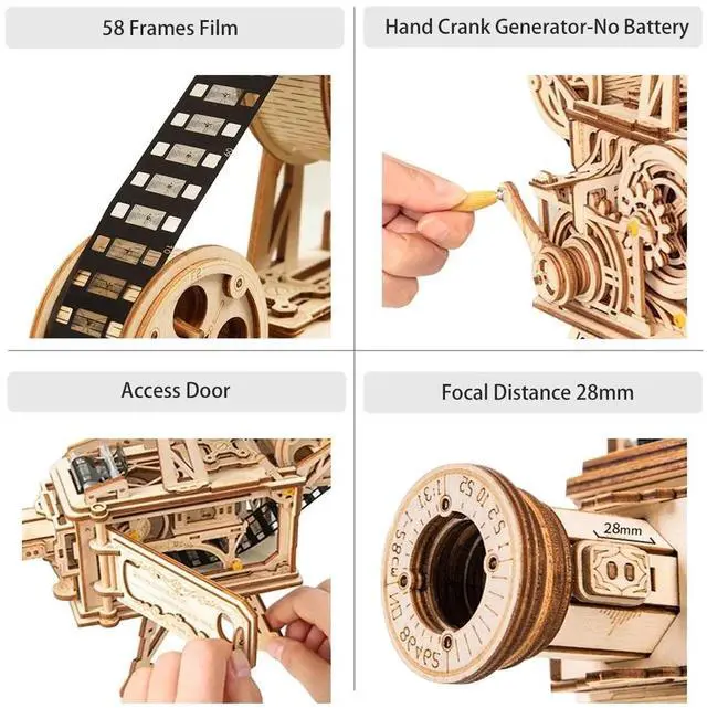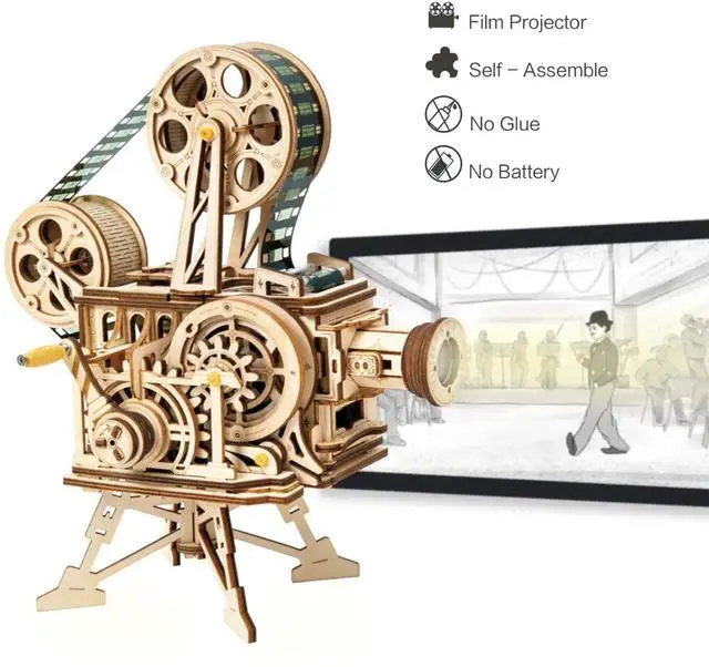 DIY movie projector Vitascope LK601 can play movie for real! Classic design with hand crank generator, it will satisfy movie lovers both in crafting and playing.
