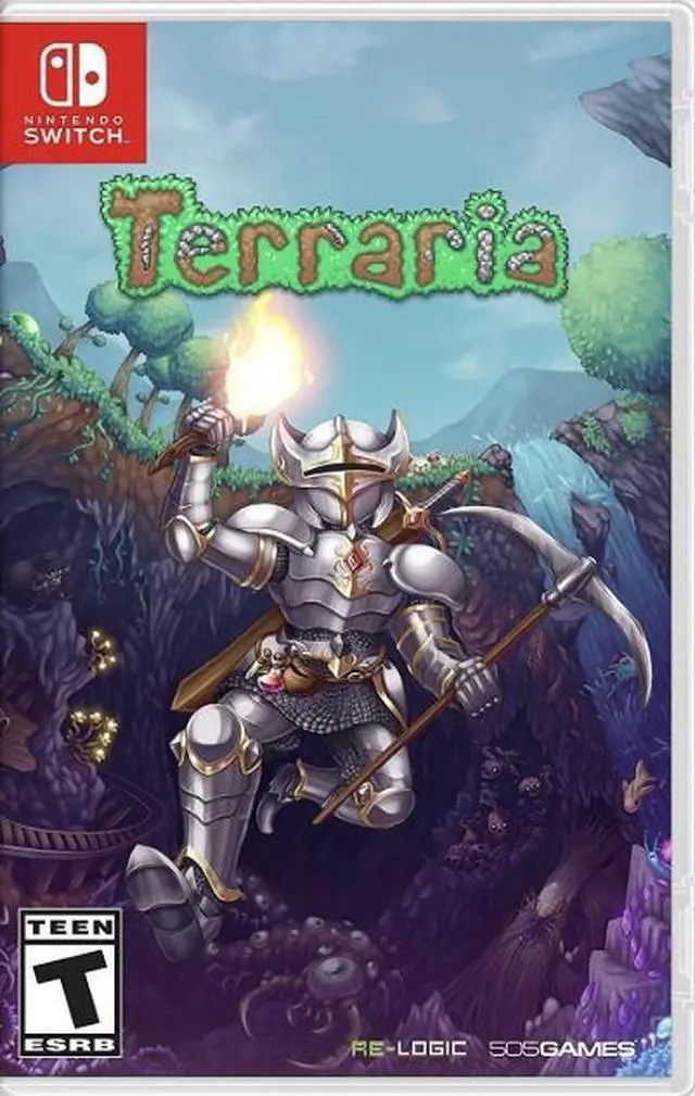 Product DescriptionPlay Terraria Switch on the go, or in your home, with 8 players online/locally, or 2 player Split Screen when docked. Includes over 3500 items to find or craft, with over 300 enemies and more than 20 bosses & events to battle. Use your Joy-Cons and touchscreen as you fight for survival, fortune, and glory. Delve deep into cavernous expanses, seek out ever-greater foes to test your mettle in combat, or construct your own city - In the World of Terraria, the choice is yours! Blending elements of classic action games with the freedom of sandbox-style creativity, Terraria is a unique gaming experience where both the journey and the destination are as unique as the players themselves!.