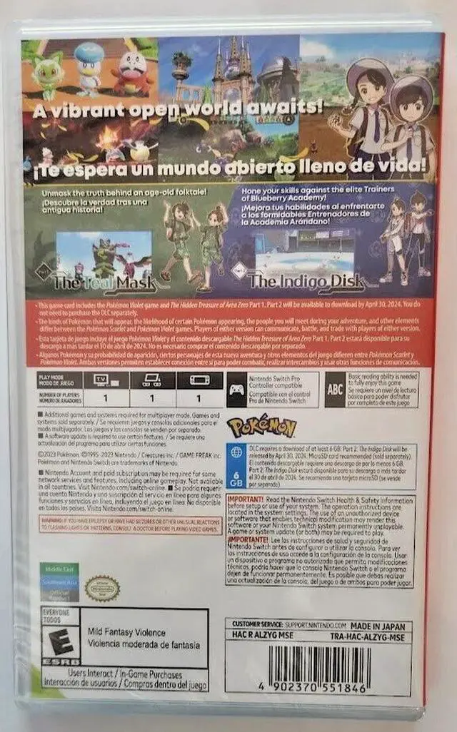 Catch, battle, and train Pokémon in the Paldea Region, a vast land filled with lakes, towering peaks, wastelands, small towns, and sprawling cities. Explore a wide-open world at your own pace and traverse land, water, and air by riding on a form-shifting Legendary PokémonKoraidon in Pokémon Violet. Choose either Sprigatito, Fuecoco, or Quaxly, to be your first partner Pokémon before setting off on your journey through Paldea.