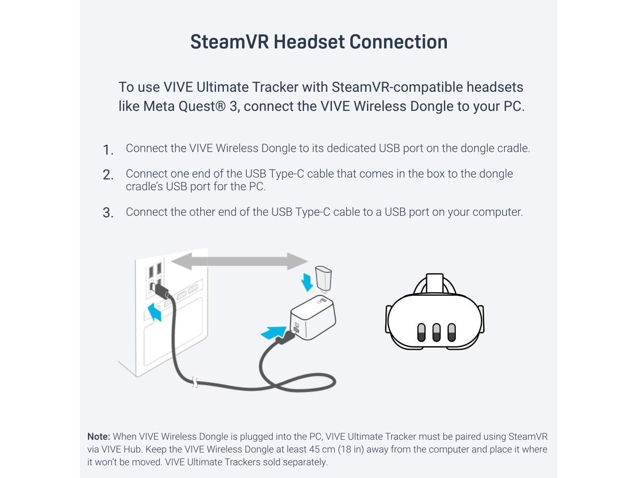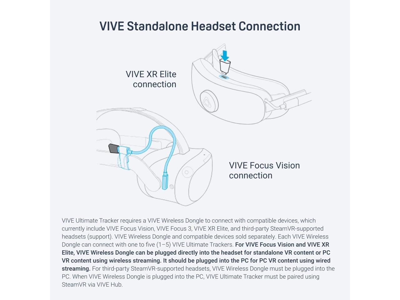Wirelessly connects to standalone VR headset and VIVE Ultimate Tracker