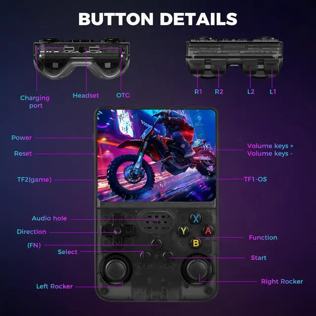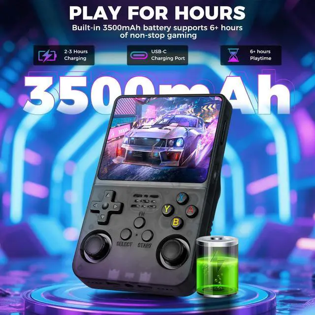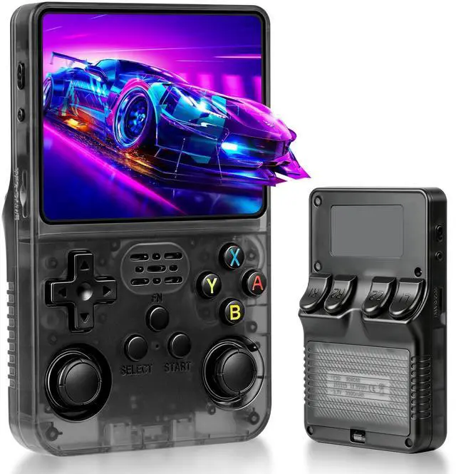 LKOHJF R36S Handheld Game Console, Retro Game Console with 3.5-in IPS HD Screen, Video Game Consoles with 64GB Memory, Ultra-Long Standby Time, Perfect for Travel & Outings, Gift for Adults Teens Kids (Black)