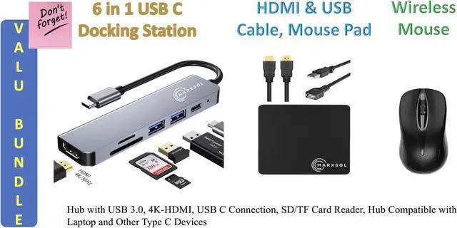Accessory: MarxsolCableAccessories (6-in-1 USB-C Docking Station Hub with USB 3.0, 4K-HDMI, USB-C Connection, SD/TF Card Reader + 64GB Memory card and HDMI & USB Cable, Mouse Pad and Wireless Mouse)
