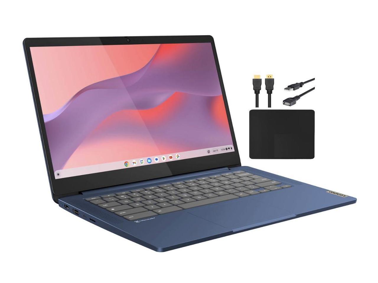 Lenovo 2023 Newest 14'' FHD Touchscreen Slim 3 Chromebook Laptop Business Student, 8-Core MediaTek Kompanio 520 Processor, 4GB RAM, 64GB eMMC, WiFi 6,Chrome OS+MarxsolCables, Abyss Blue