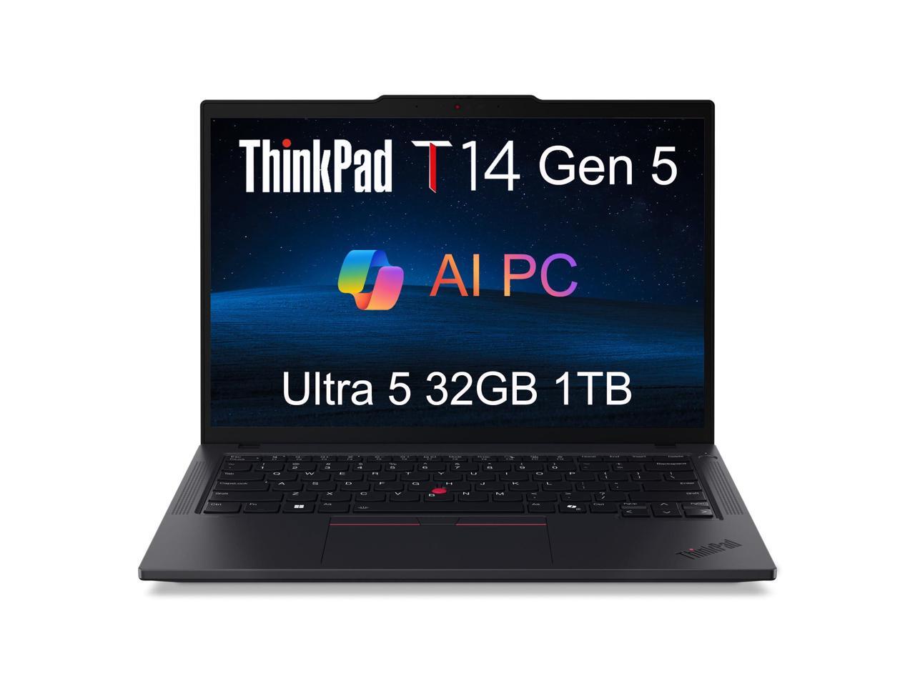 Lenovo ThinkPad T14 Gen 5 Business Laptop (14" FHD+, Intel Core Ultra 5 125U (>i7-1355U), 32GB DDR5 RAM, 1TB SSD), Backlit, Fingerprint, 5MP Webcam, 3-Year Warranty, Wi-Fi 6E, Win 11 Pro, 2025 AI PC