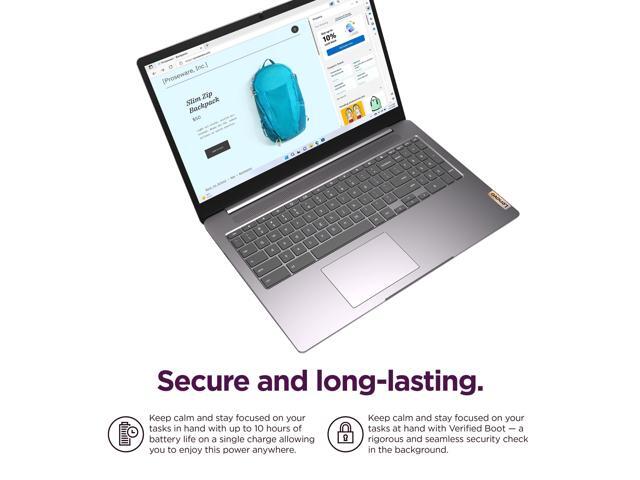 - TOUGH AND SMART -- Experience smooth multitasking and speedy performance with the IdeaPad 3i Chromebook, perfect for work or play on the go. The fast, secure operating system built by Google comes with AI tools to make hard work feel easy. Write with confidence using AI-assisted suggestions, design unique backgrounds, and transform photos effortlessly with creative AI features. Its lightweight design and 10-hour long battery life make it perfect for portability.