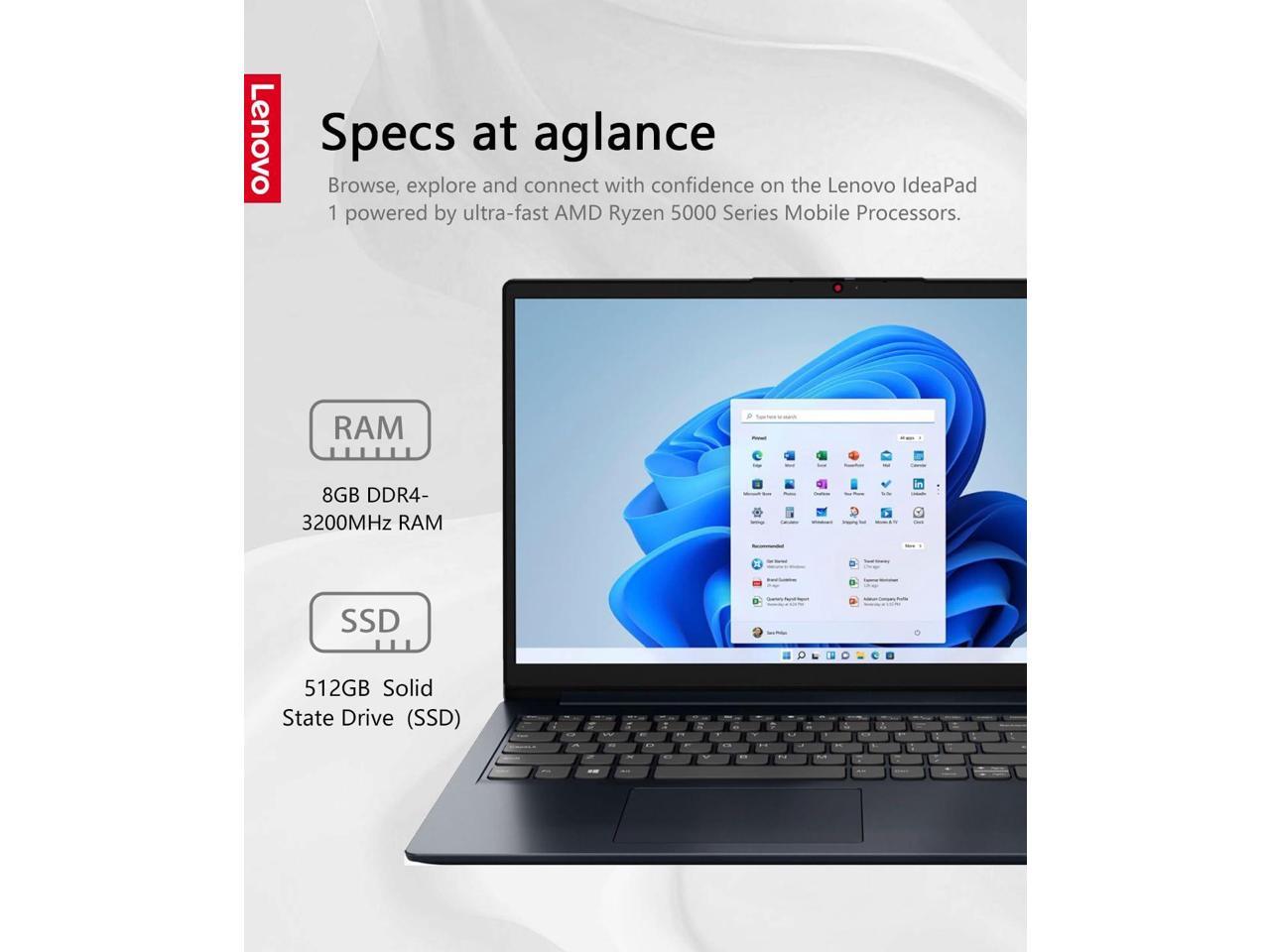 Lenovo Ideapad 1 Laptop, 15.6" FHD (1920x1080) IPS 300nits Anti-Glare Display, Touch, Ryzen 5 7520U, 8GB RAM, 512GB Storage, AMD Radeon Graphics, HDMI, Windows 11, HDMI, Abyss Blue