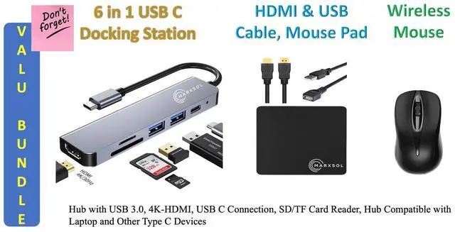 lbsAccessory: MarxsolAccessory (6-in-1 USB-C docking station hub, USB extension cord, HDMI cable, mouse pad, and