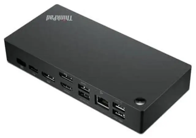 The smarter way to work, Introducing the ThinkPad Universal USB-C Dock. This advanced, universally compatible one-cable docking solution lets you work smarter, not harder. It comes with a vast array of ports, next-gen plug and play functionality, and rapid charging capabilities (up to 100W for most USB-C notebooks*). Smart enough to install critical firmware updates automatically, itas ideal for any mixed-PC environment and home-based working, and gives you the freedom and power to do more. *The in-box 90W power adapter charges ThinkPad and other USB-C notebooks up to 65W.