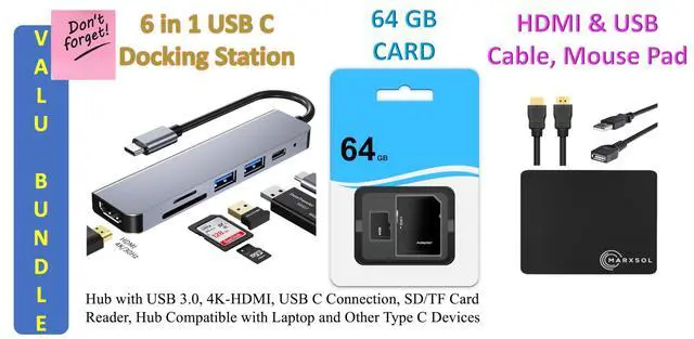 lbsAccessory: MarxsolAccessory (6-in-1 USB-C Docking Station Hub with USB 3.0, 4K-HDMI, USB-C Connection, SD/TF Card Reader + 64GB SD Card+HDMI & USB Cable, Mouse Pad).