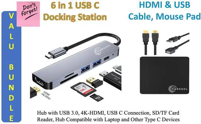 lbsAccessory: MarxsolAccessory (6-in-1 USB-C Docking Station Hub with USB 3.0, 4K-HDMI, USB-C Connection, SD/TF Card Reader)