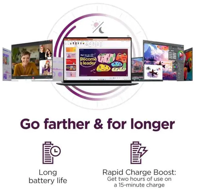 Keep pace with a large battery and rapid-charging technology that provides two hours of use on a 15-minute charge. AI that improves your experienceSmarter learning starts with smarter features powered by the Lenovo AI Engine. Maximize your performance, battery life, and thermals based on what you're doing with the adaptive Smart Power feature. At the same time, you improve your connectivity via Smart Wireless. Protect your system from harm with integrated security features such as Natural File Guard while you keep background noise to a minimum with noise canceling.