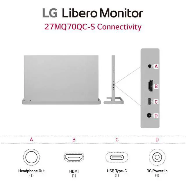 LG 27MQ70QC-S.AUS 27" QHD IPS HDR 10 Libero Monitor with Detachable Full HD Webcam
