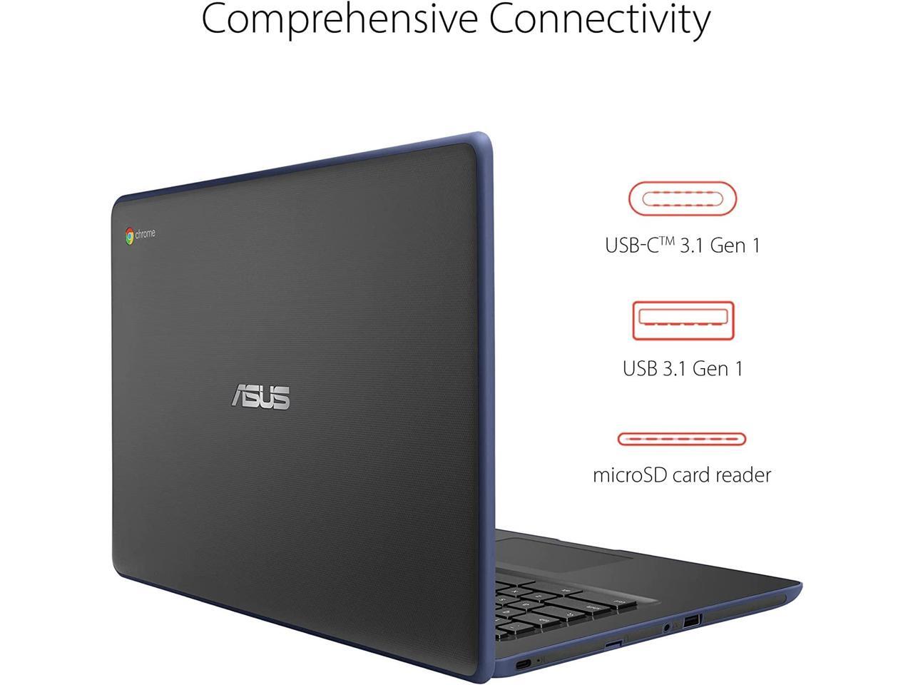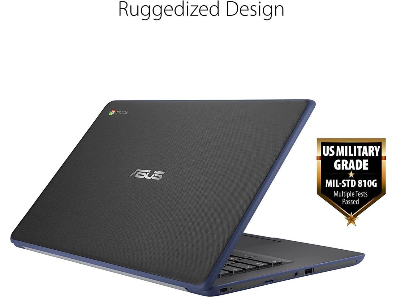 ASUS Newest 14" Rugged & Spill Resistant Chromebook, Education Edition, Military STD 810G, Intel N3350, 4GB RAM, 160G Space(32G eMMC+128G Card), WiFi, Bluetooth, Webcam, DarkBlue, Chrome OS, JVQ MP