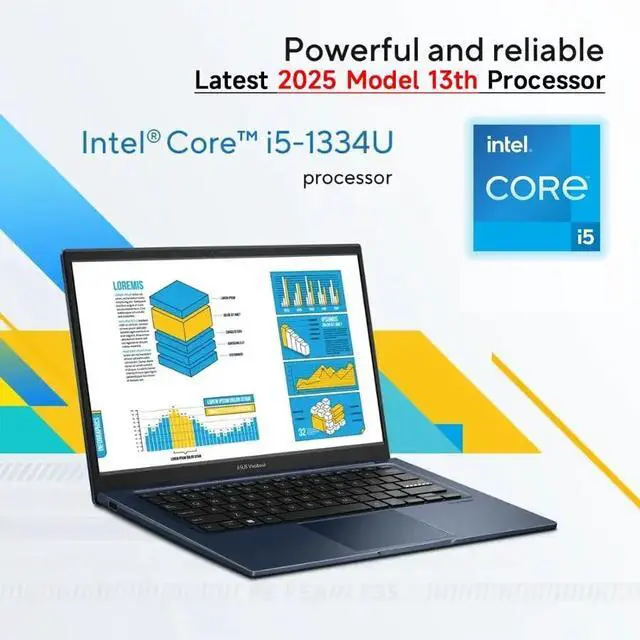 ASUS Vivobook 14" 2025 Model Laptop, Latest Intel 10-Core i5-1334U(Beats i7-1265U), 720p Webcam, USB C, Slim Design, 180 Flat-Lay Hinge, Win11, Wireless Mouse & 128GB PSD
