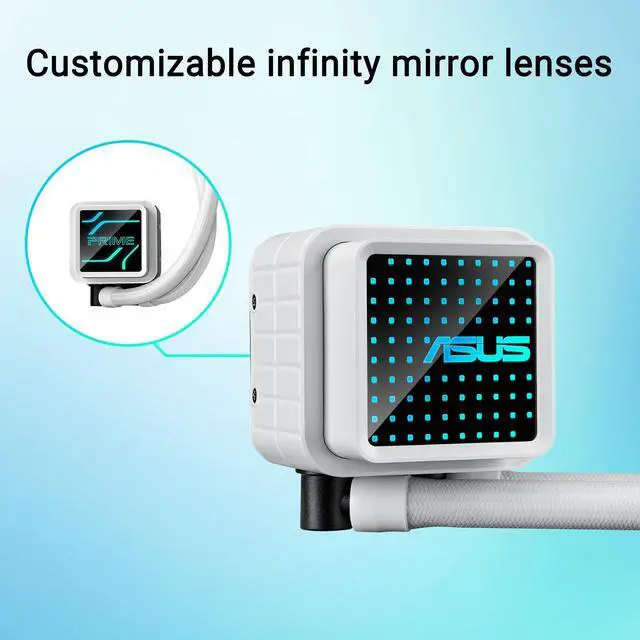 ASUS Prime LC 360 ARGB White Edition features a specially designed CPU contact area that can effectively cool the CPU. Pre-installed ARGB fans optimize the user's PC DIY experience. A single cable connects the lighting and fans. The customizable infinity mirror in the water block give the PC build more versatility look.
