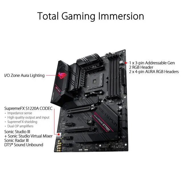 Experience next-level performance and connectivity with the ASUS ROG Strix B550-F Gaming, featuring PCIe 4. 0 and 2. 5Gb Ethernet. Robust power and effective cooling make the ROG Strix B550-F Gaming the perfect partner for 3rd Gen AMD Ryzen CPUs. Futuristic aesthetics, intuitive software, and a reliable Stack Cool 3+ design put your build in the winners circle. Free 3-months