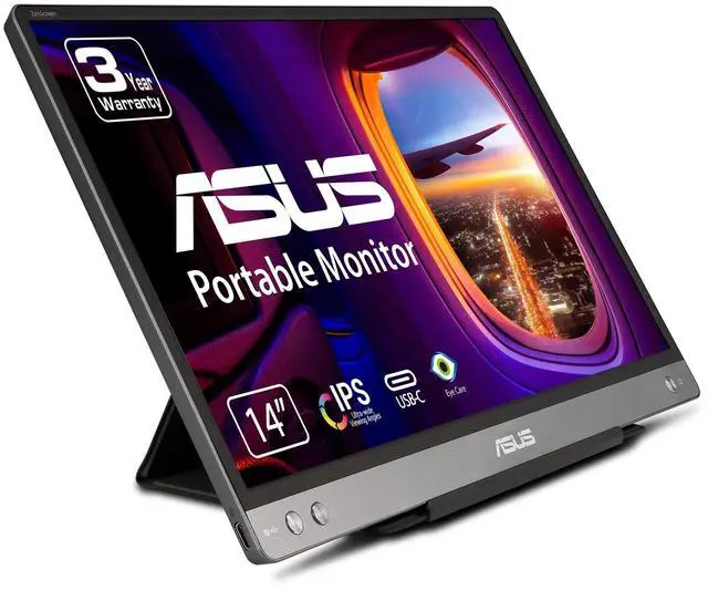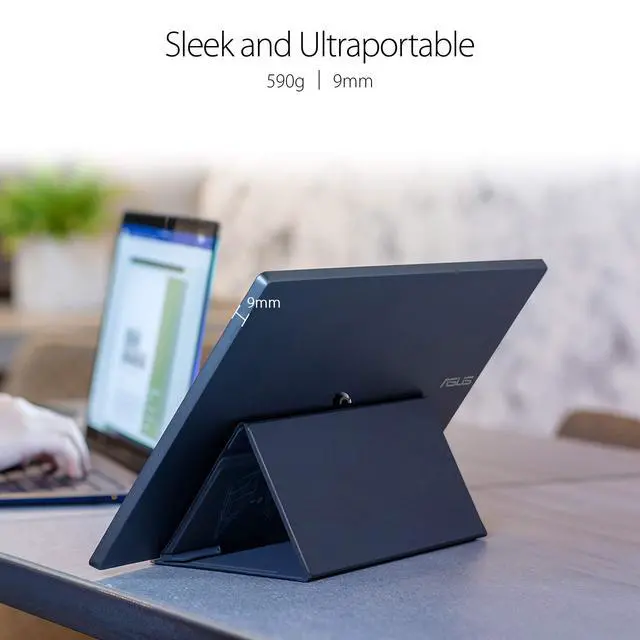 Stay productive with ASUS ZenScreen MB14AC, an ultra-slim portable monitor with an innovative hybrid-signal solution that features a one-cable-connect-all support for power and file transmission. Lighter and thinner than ever, the MB14AC easily slides into briefcases and is the perfect travel companion for on-the-go client meetings and dual-monitor-presentations.
