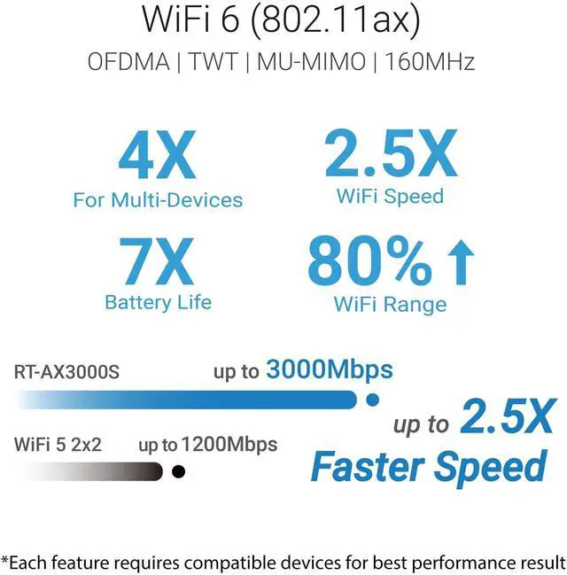 Enjoy fast, reliable WiFi 6 with the ASUS RT-AX3000Sperfect for streaming, gaming, and everyday browsing. With built-in security and easy setup, it delivers a smooth, worry-free internet experience for the whole family. AiMesh support lets you easily expand coverage across your home, ensuring a strong connection in every room.