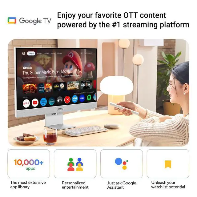 Level up your desktop setup with ZenScreen Smart MS32UC a 31.5 -inch monitor thats ideal for more than work. View images or play games on its stunning 4K HDR panel. With 400, 000+ movies and TV episodes available across 10, 000+ apps, Google TV takes streaming and live TV to the next level bringing together your favorite entertainment from across your apps and organizing it all, just for you. And if youre a streamer, go live on all your favorite sites with ZenScreen Smart MS32UCs multi-platform streaming app. Work hard, play harder, all on one sleek screen.