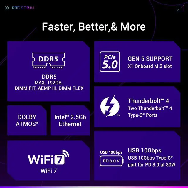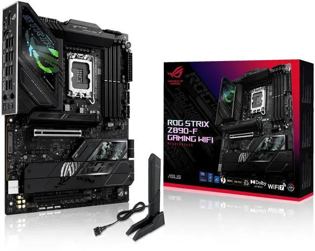 ASUS ROG STRIX Z890-F GAMING WIFI Intel Z890 LGA 1851 ATX motherboard, Advanced AI PC-ready, 16+2+1+2 power stages, DDR5, WiFi 7 with Q-Antenna, five M. 2 slots, PCIe 5.0 x16 SafeSlot with Q-Release Slim, Thunderbolt 4, USB Type-C, NPU Boost, AI Overclocking, AI Cooling II, AI Networking II and Polymo Lighting