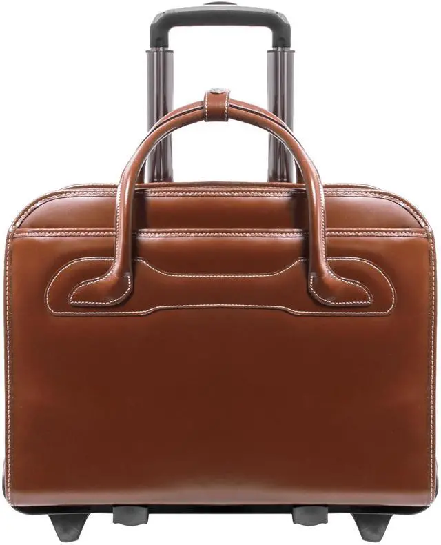 Patented 2-in-1 Detachable Wheel and Handle System briefcase. Interior organizer with storage space for media devices, business cards, key holder and pens. Double compartment divided by secured zipper pocket for important documents. Built-in padded laptop compartment that protects most laptops up to 17" in size. Dual Laptop Protection System uses a high-tech ABS frame to protect laptop from exterior impact and a sleeve with high-density foam to help absorb shock and prevent moisture intake. Smart Strap Attachment System allows easy attachment on extended handles of other rolling cases. Weather proof cover included.