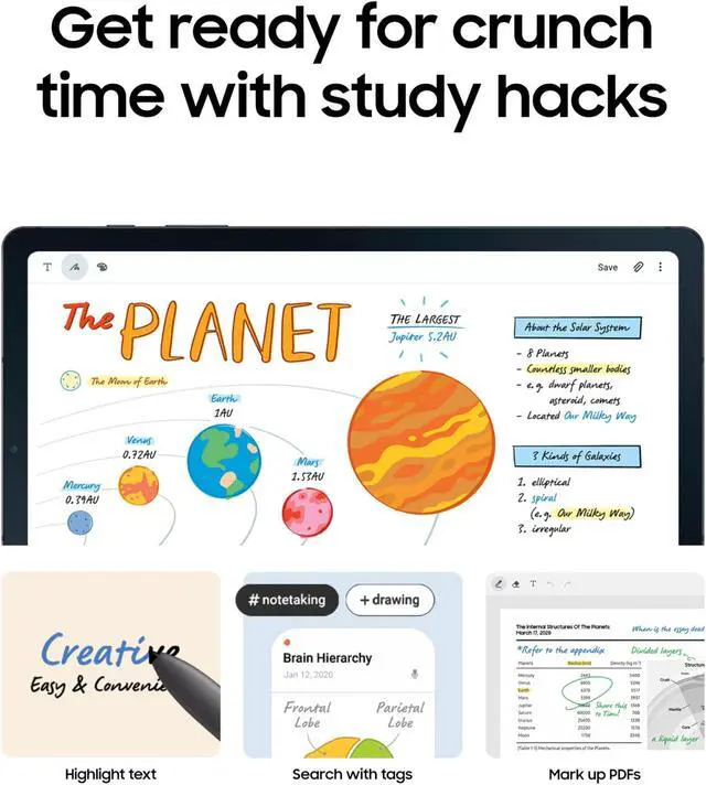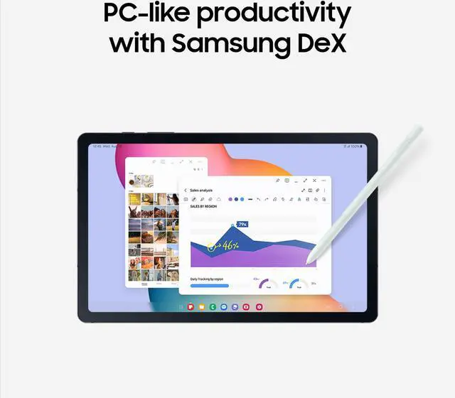 The latest processor has the speed and smoothness to let you hit the "Next Episode" button over and over again. And don't worry - the battery will keep up with your packed life. All in a tablet that won't break your budget. Galaxy Tab S6 Lite - the reliable tablet that's all about fun, plus a little work too.