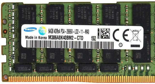 Samsung 64GB PC4-21300 DDR4-2666V-L Load Reduced 4DRX4 CL19 288 PIN 1.20V Memory Module LRDIMM M386A8K40BM2-CTD