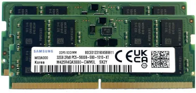 Sam Original 64GB (2x32GB) DDR5 5600MHz PC5-44800 SODIMM 2Rx8 CL46 1.1v M425R4GA3BB0-CWM RAM Memory Notebook Laptop Module Upgrade Adamanta