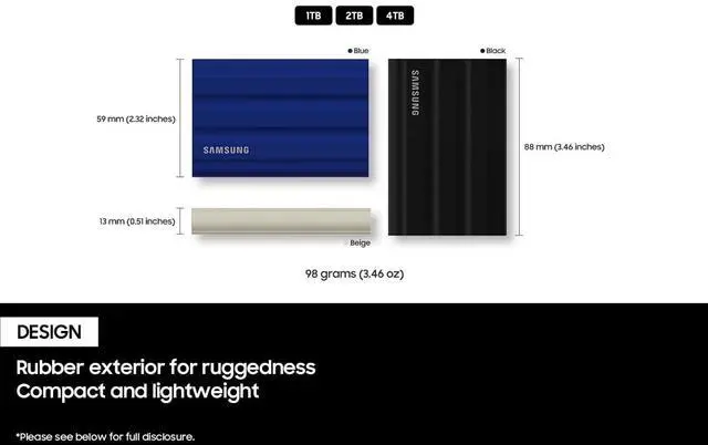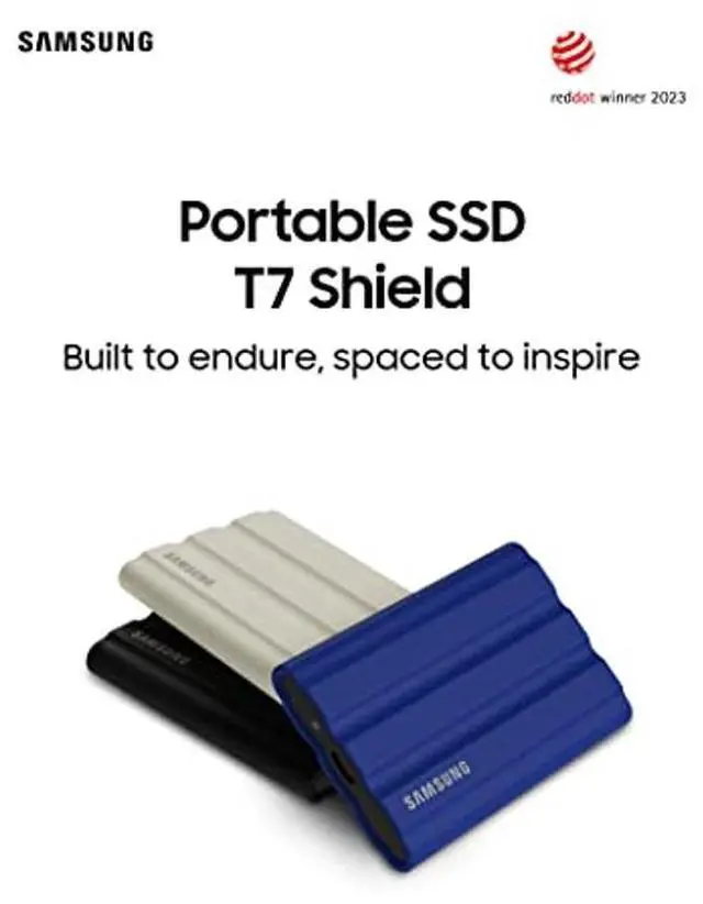 Samsung Portable SSD T7 Shield is a rubber protected external storage device for outdoor users, and contents creators which features outstanding performance and strengthened durability. The T7 Shield earns consumer trust with its high compatibility