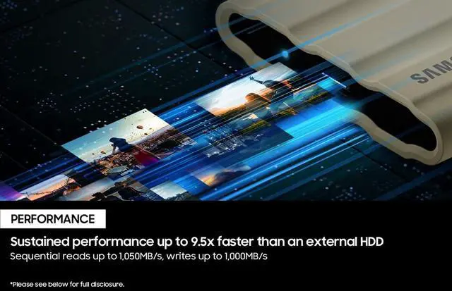 SHARE IDEAS IN A FLASH: The T7 is embedded with PCIe NVME technology that brings you fast read and write speeds up to 1,050/1,000 MB/s4, making it almost twice as fast as the T5