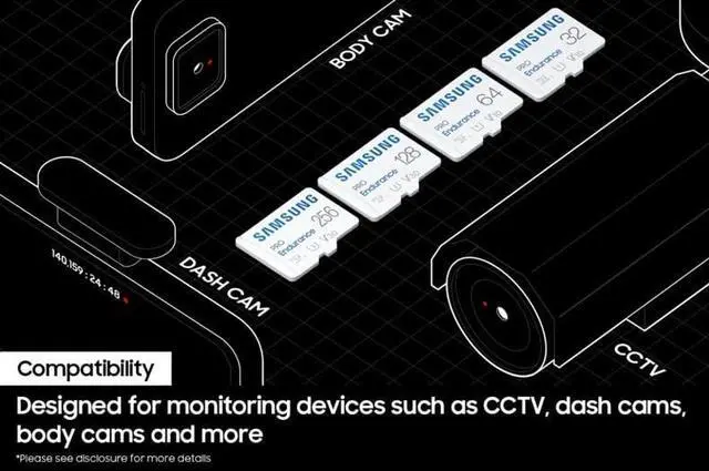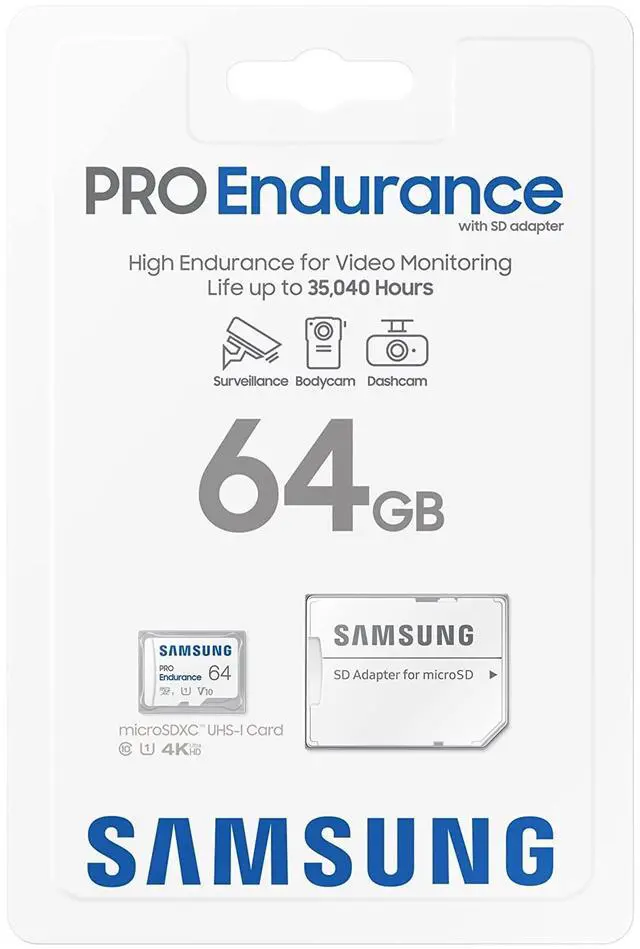 Samsung PRO Endurance New Portable SSD for monitoring devices is built to last up to 140K hours of recording (256GB model). ** This solid state drive stands up against magnets, X-rays, water, drops and more. Record and play in FHD and 4K. The PRO Endurance is engineered to deliver long lasting performance. *Actual usable storage capacity is measured with SD Formatter 3.1 tool with exFAT file system and may be less than labeled capacity.