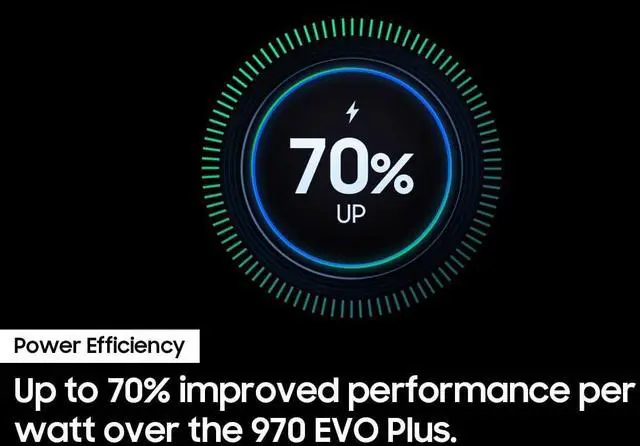 Fast speeds. Power efficiency. Temperature control. Its everything you want in a storage device. It boasts the latest available PCIe 5.0 interface along with improved performance compared to 970 EVO Plus. Sequential and random write performance was measured with Intelligent Turbo Write technology being activated. Intelligent Turbo Write operates only within a specific data transfer size. Performance may vary depending on SSDs firmware, system hardware & configuration and other factors. For detailed information, please contact your local service center.