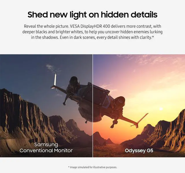 Samsung's Odyssey G50D Gaming Monitor with QHD resolution features incredibly detailed, pin-sharp images. The fast IPS panel delivers clear, vibrant colors and a 178 viewing angle, while the 180Hz refresh rate and 1ms response time (GtG) eliminates lag and enables frames with minimal blur for ultra-smooth gaming action. VESA DisplayHDR 400 offers more clarity, providing dynamic contrast with deeper blacks and brighter whites. G-Sync compatibility keeps the GPU and panel synced up to eliminate choppiness, screen-lag, and image tears. Fast-action and complex game scenes are stable with AMD FreeSync for your competitive edge.