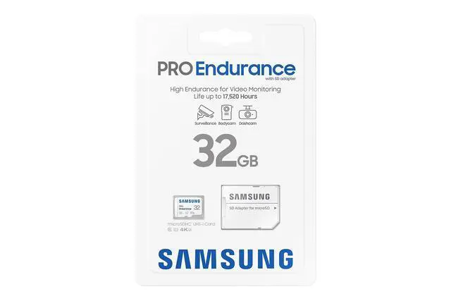 Samsung PRO Endurance New Portable SSD for monitoring devices is built to last up to 140K hours of recording (256GB model). ** This solid state drive stands up against magnets, X-rays, water, drops and more. Record and play in FHD and 4K. The PRO Endurance is engineered to deliver long lasting performance. *Actual usable storage capacity is measured with SD Formatter 3.1 tool with exFAT file system and may be less than labeled capacity.