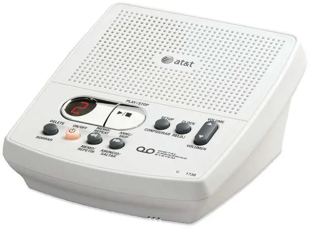 From the ManufacturerThe AT&T 1739 Digital Answering System is a standalone device that offers 40 minutes of digital recording time, call screening, and outstanding sound quality. This well-designed answering machine also boasts integrated Message Guard backup memory to keep messages from being erased in the case of a power failure. The 1739 Digital Answering System offers a very convenient feature to help make it easier to get your messages remotely from any touch-tone phone using its built-in remote access option. What's in the BoxAT&T 1739 Digital Answering System, telephone line cord, wallet card, user's manual.