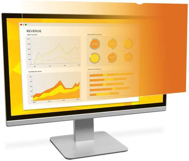 3M Gold Privacy Filters keep confidential information private when working in public places. User sees clearly while people on either side see a vivid golden screen.