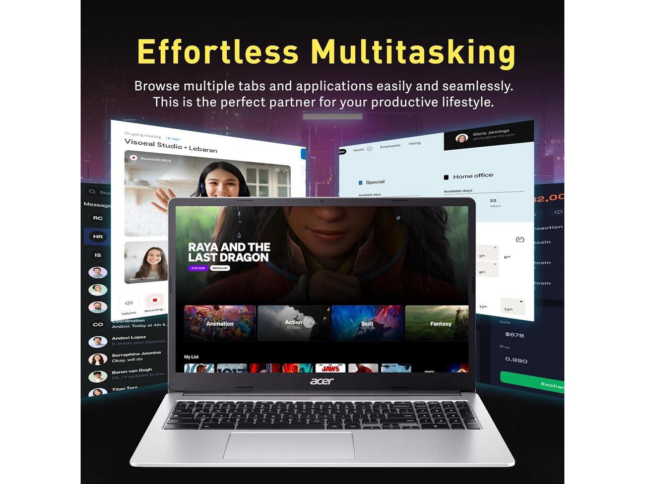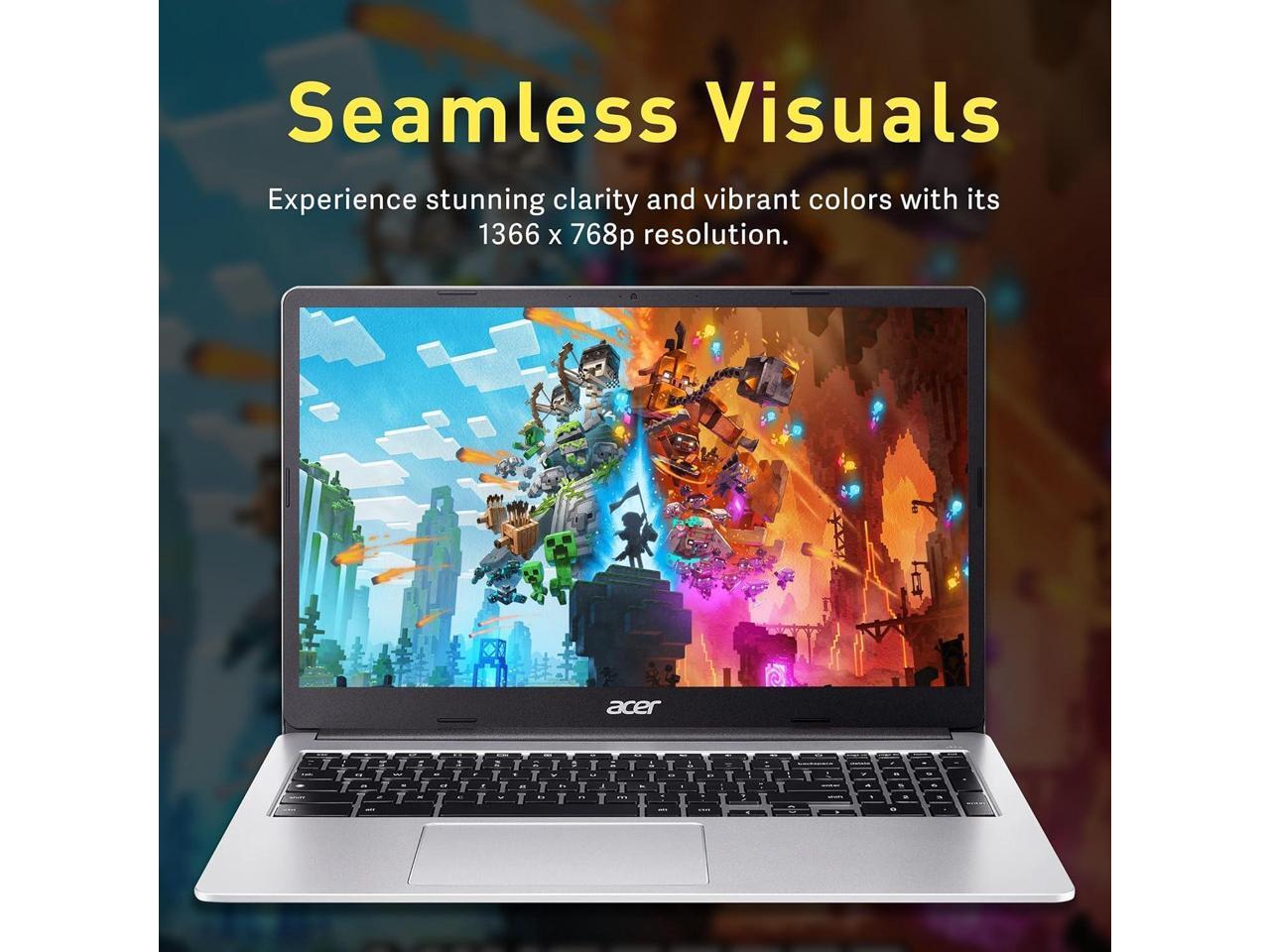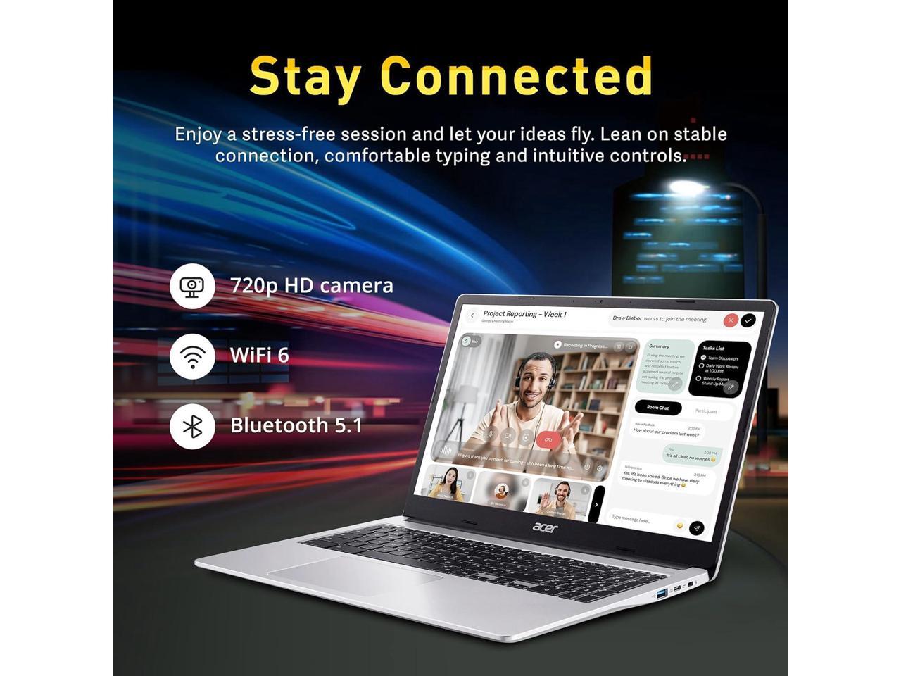 - Display: Acer Chromebook laptop 15.6inch HD Resolution, Widescreen with Narrow Bezels.